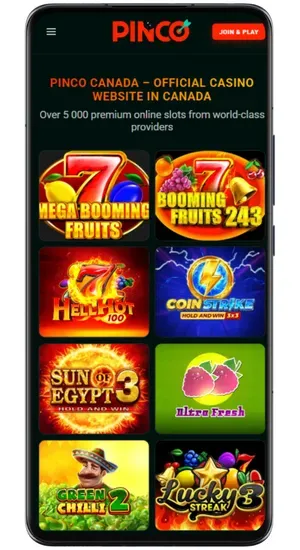 Pinco Casino has been operating since 2021 and offers over 5,500 games for international players, including those from Canada. We are licensed by the Curacao Licence OGL/2024/1516/0841 and provide security, transparent payments, and regular promotions. More than 25,000 new players join our platform every month. Our site can be accessed in Canada from any device — Android, iOS, or a computer. Whether you’re looking for the Pinco casino app or prefer playing directly in your browser, we’ve got you covered.