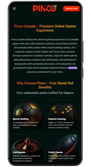 Pinco Casino on Mobile Devices: Website, Android and iOS